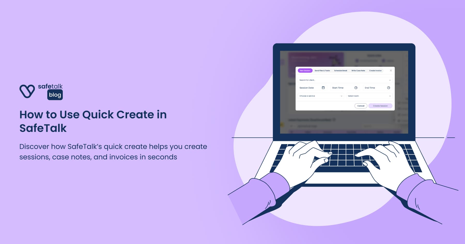 Quick Create brings your core therapist tools together in one place so you can act instantly instead of navigating through multiple menus.
