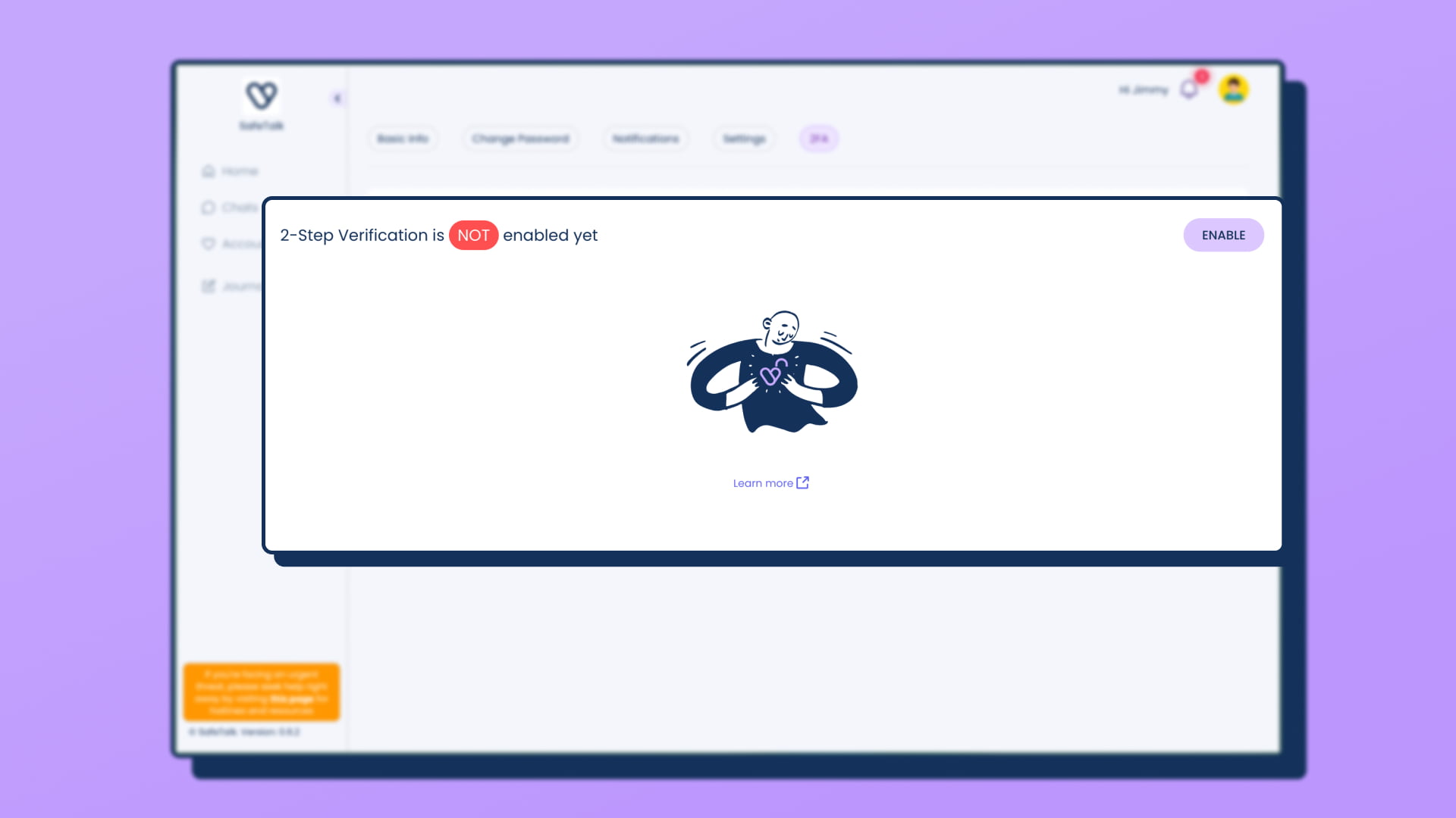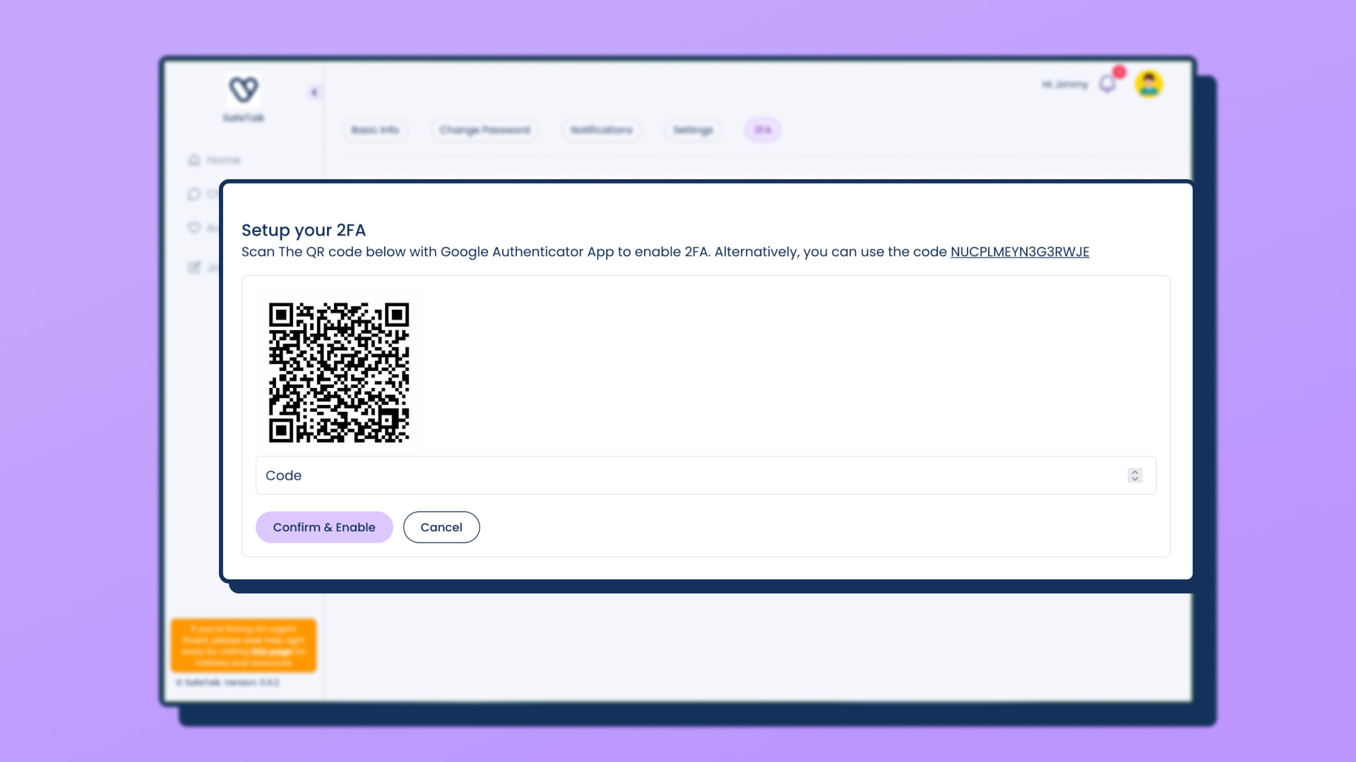 Next, Enable Two-Factor Authentication on your SafeTalk Account