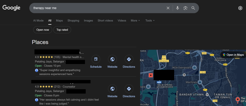 When people look for therapy, they don’t search for “I want to find my calm”, instead they type things like “therapy in KL” or “anxiety counseling near me.”