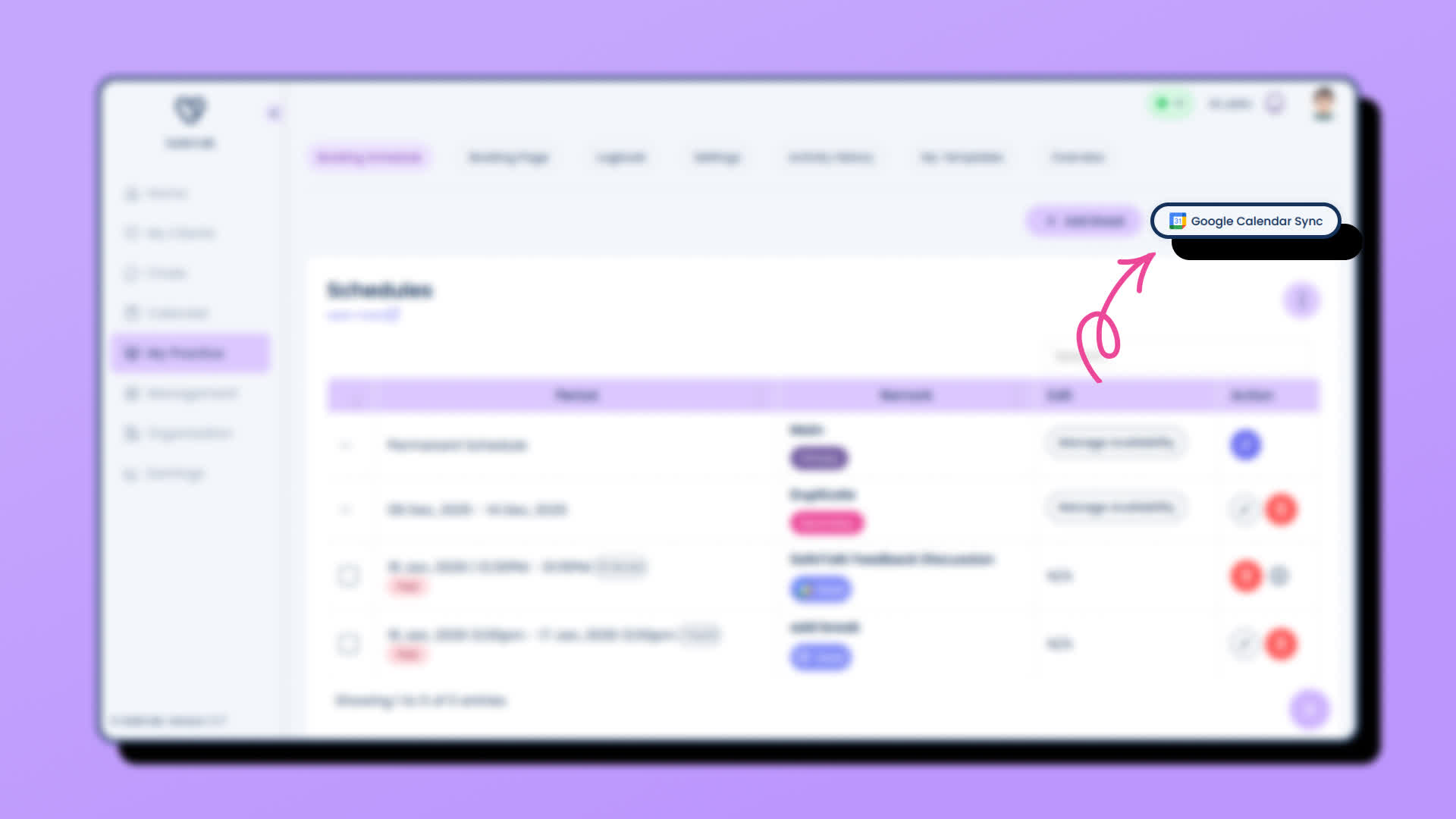- On top right of the “My booking schedule” page, click the “Google Calendar Sync” button